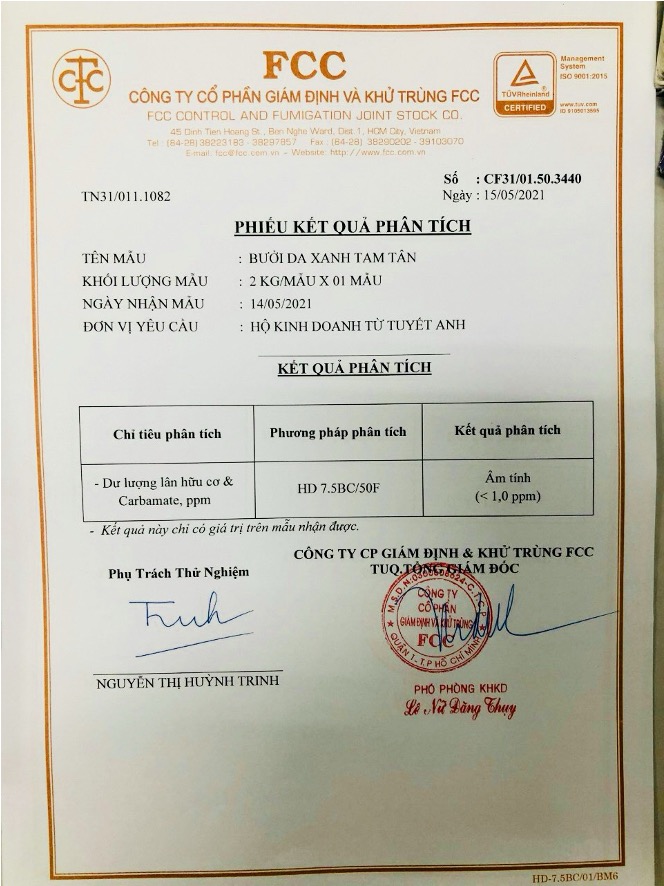 Chính sự cam kết về chất lượng đã tạo nên sự khác biệt cho thương hiệu bưởi da xanh TAM TÂN trên thị trường.